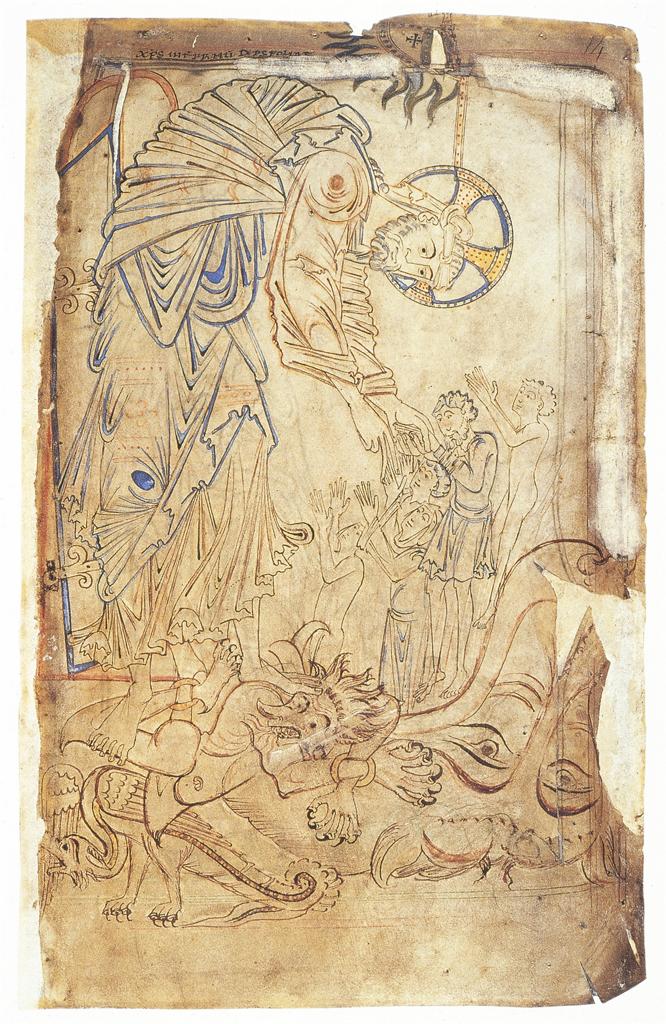 This piece of dramatic liturgy retelling the Harrowing of Hell (in Latin) survives in the ninth-century Book of Cerne (Cambridge, University Library, Ll.1.10; 820×840, Mercia), on folios 98v–99v. This verse text is based on the Latin Pseudo-Augustine Sermo 160, with parts of the Roman Psalter added to form a type of catena of biblical material. A.B. Kuypers printed the text in his diplomatic transcription of the Book of Cerne, and David N. Dumville provided a critical edition, with notes on the text and its sources. This translation (based on Dumville’s edition) is, to my knowledge, the first full translation to appear in print [in my book Preaching Apocrypha in Anglo-Saxon England, 217-19.]. References in brackets are to sources in the Psalms. When biblical passages have been used as a source, I have generally followed the Douay-Rheims translation, with some modernizations for style.