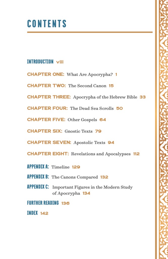 As the marketing description promises, Apocrypha for Beginners features “More than 50 apocrypha―Delve into a variety of apocrypha from different eras and cultures, like the Book of Enoch, the Gospel of Judas, and more.” In the introduction, I say that the book includes “some of the most important for the histories of Judaism and Christianity, as well as some of my personal favorites.”