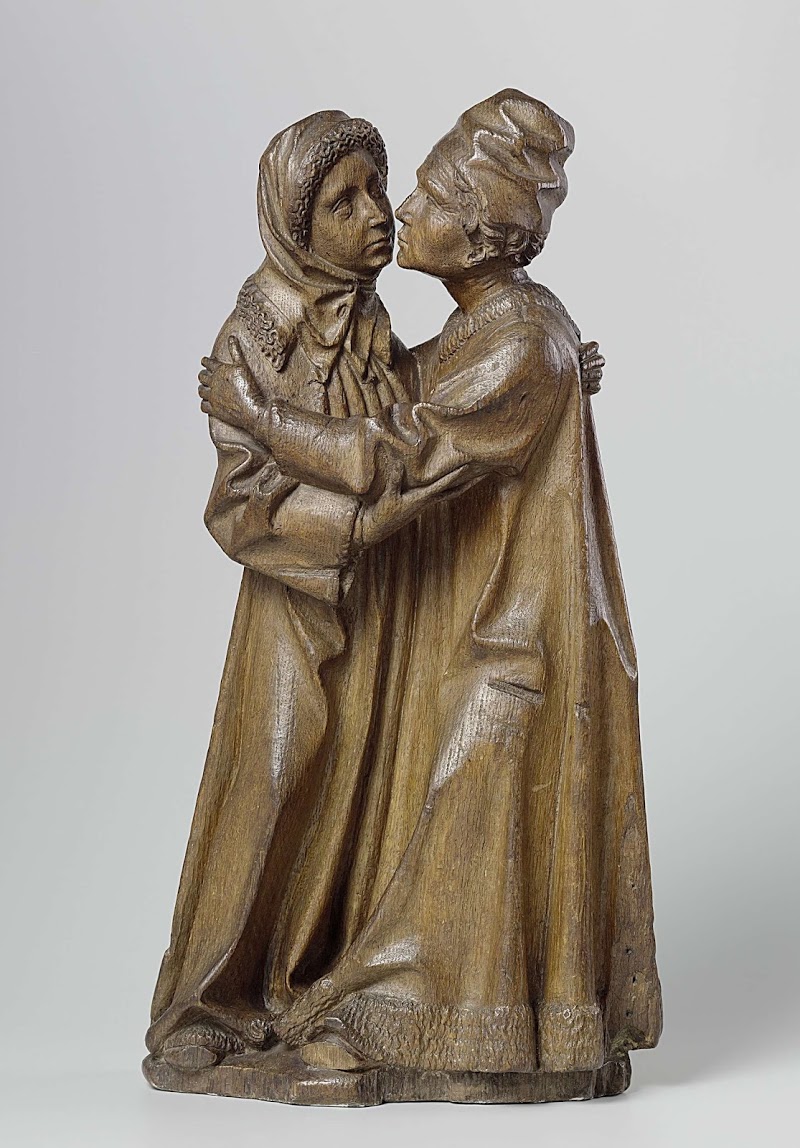 The Meeting of Joachim and Anna oak sculpture, Master of Joachim and Anne, c. 1470, now held by the Rijksmuseum, Amsterdam (object; see the image at the top of the page).